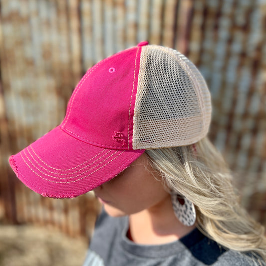 Vintage Washed Hot Pink Distressed Baseball Cap