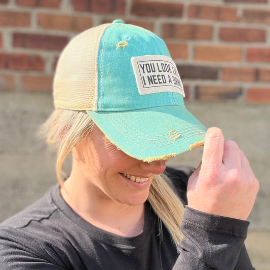 You Look Like I Need a Drink Azul Vintage Washed Distressed Baseball Cap