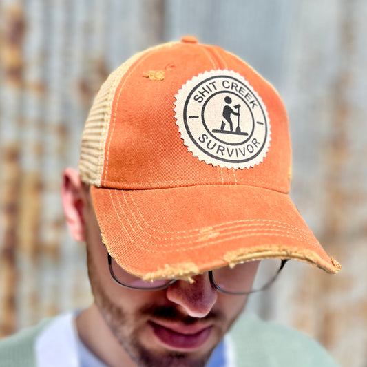 Burnt Orange Shit Creek Survivor Vintage Washed Baseball Cap