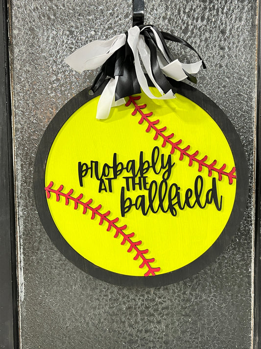 Probably at the Ballfield (Softball) Doorhanger