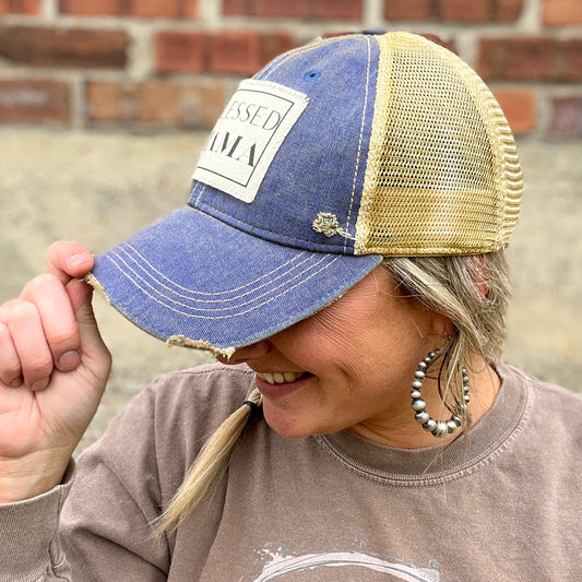 Blessed Mama Royal Vintage Washed Distressed Baseball Cap