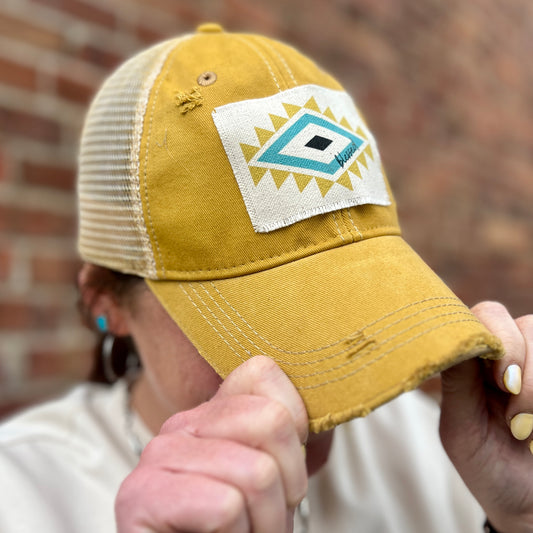 Aztec Azul Vintage Washed Distressed Baseball Cap
