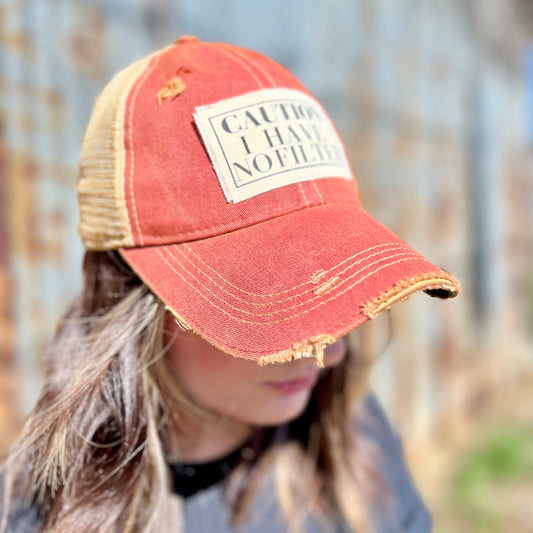 Brick Red Caution I Have No Filter Vintage Washed Baseball Cap