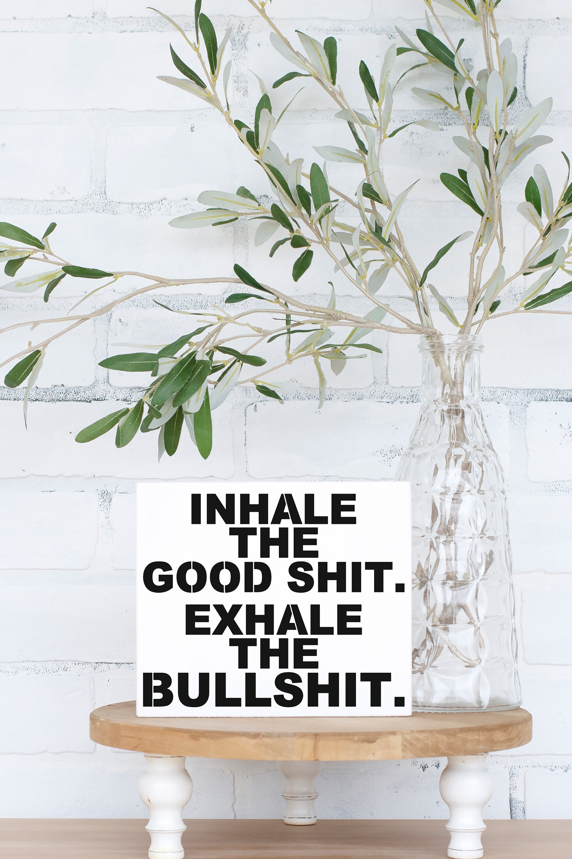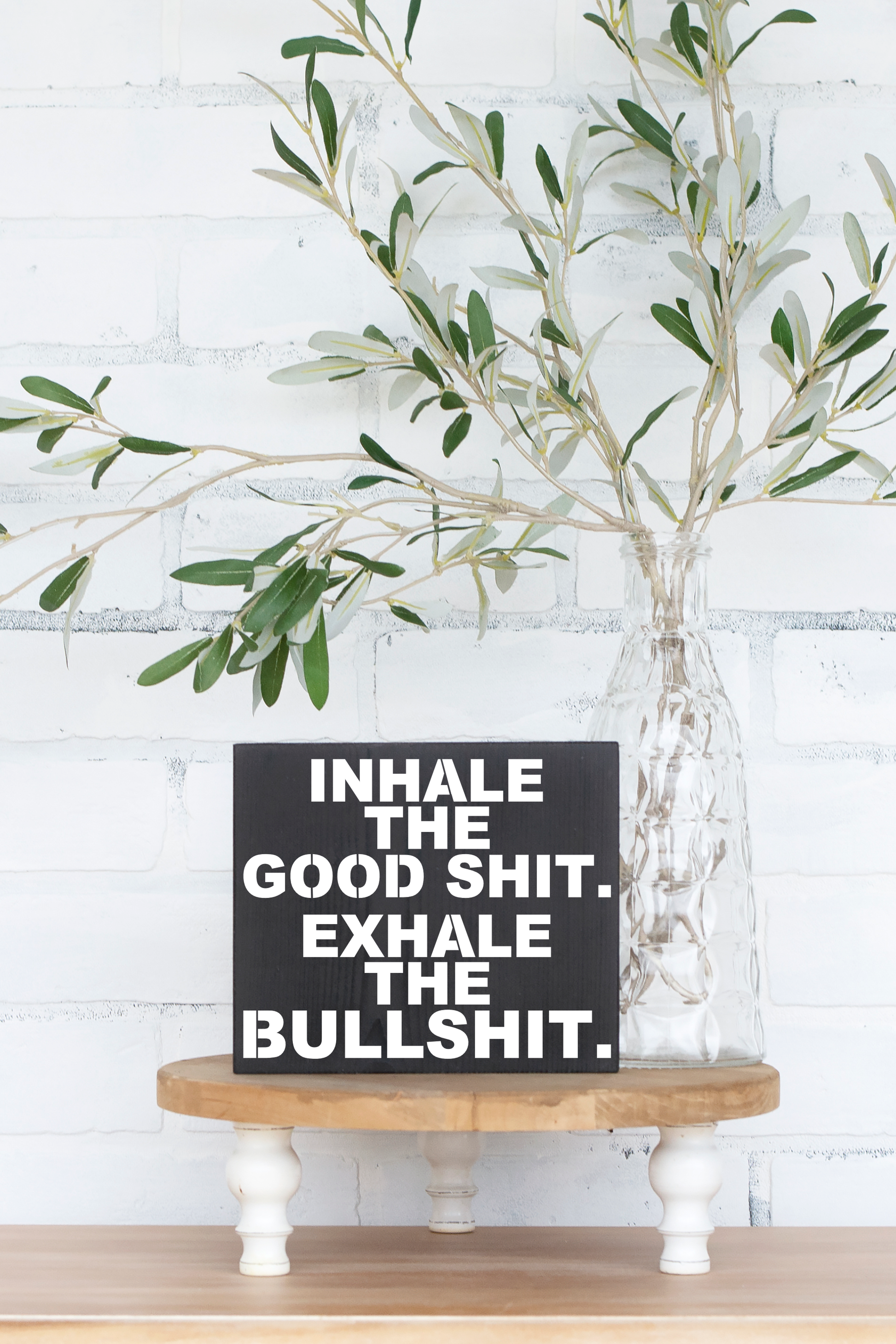 This 8x6 Inhale the Good Shit Exhale the Bullshit Wood Sign is the perfect addition to your home. Constructed from sustainable pine wood, it is sealed for protection and comes with a sawtooth hanger for easy display. Its humorous message is sure to inspire conversation and laughter.