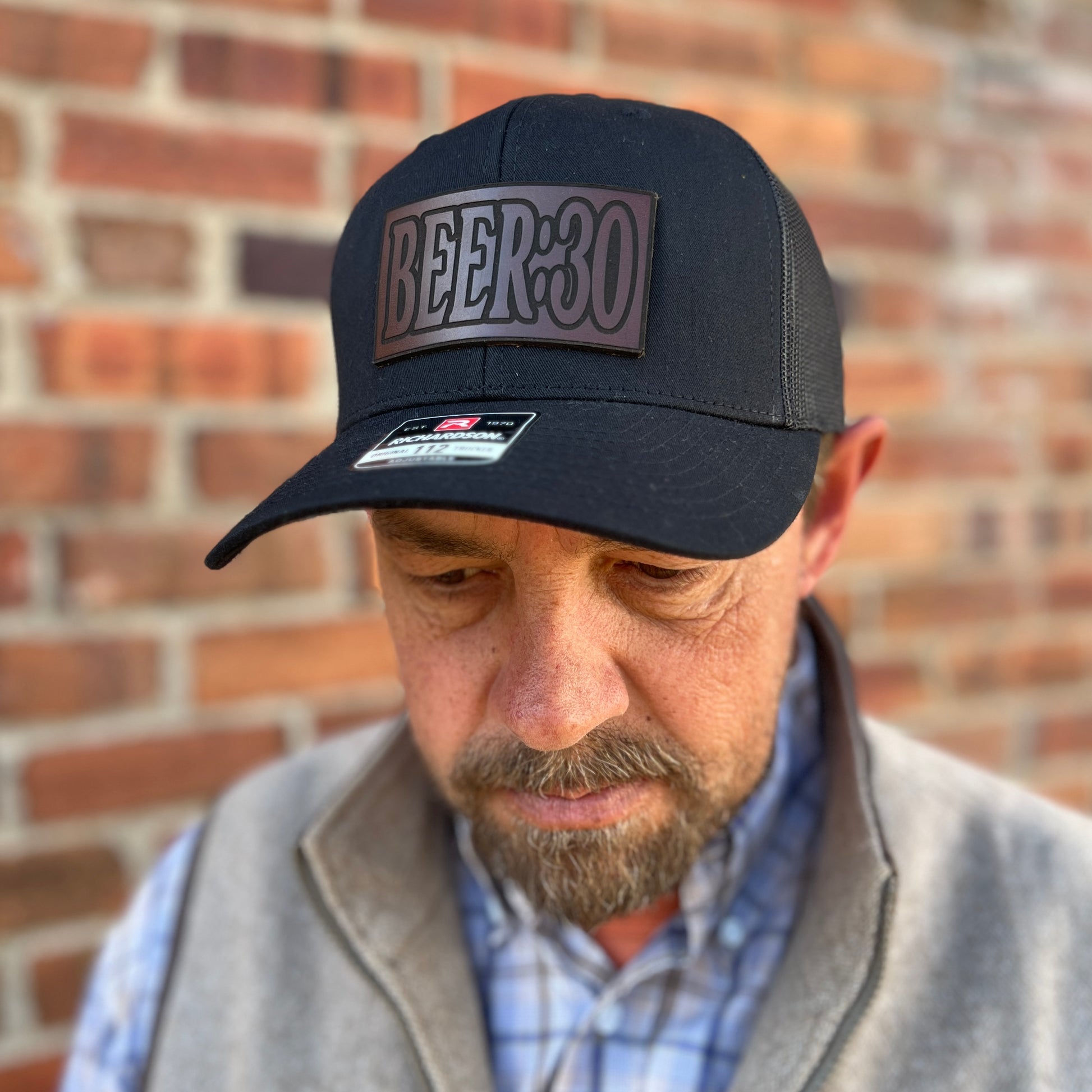 Best selling Richardson 112 in all black with laser engraved genuine leather American Flag.
